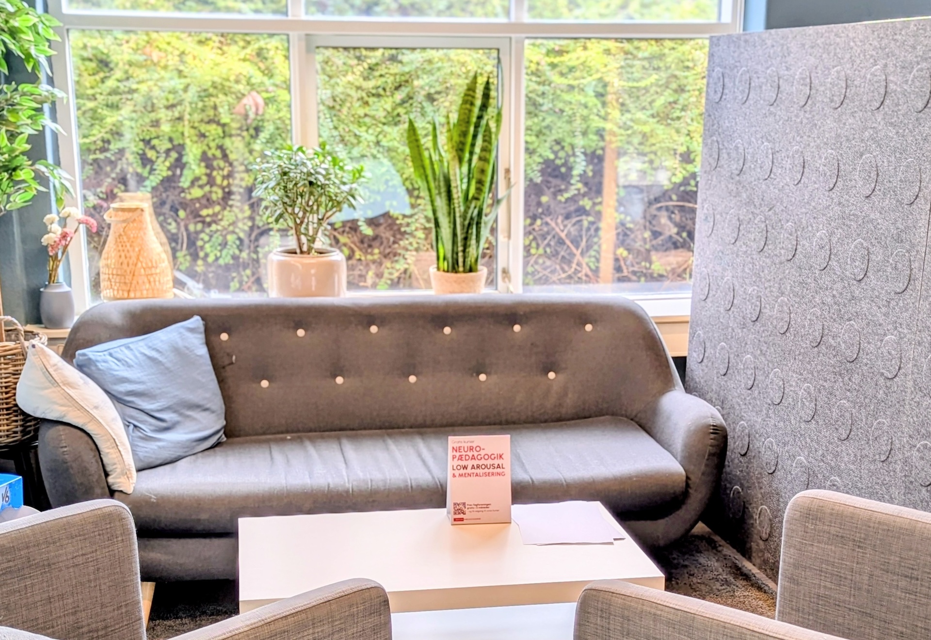 Vi arbejder miljøterapeutisk og gør os umage med at skabe et fysisk og psykisk læringsmiljø, der er roligt, overskueligt og indbydende. Grønne planter, dæmpede farver og ryddelige omgivelser er med til at skabe en stemning, hvor der er plads til både fordybelse, læring og samvær. Eleverne har deres egne små “spaces” i klassen, og vi oplever, at de selv tager ansvar for at passe på det fælles miljø.